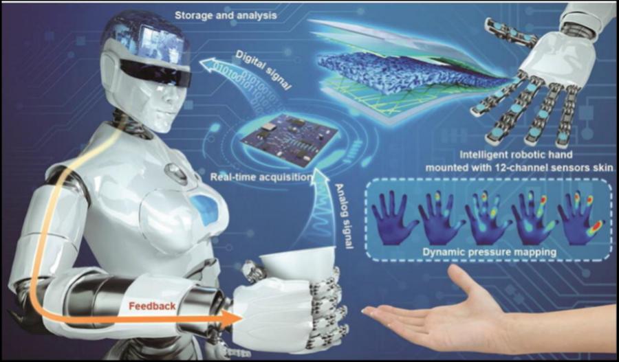 Background and Motivation: The sense of touch is a critical faculty enabling humanoid robots to interact safely and reliably with delicate objects. To achieve human-like dexterity, a smart tactile "e-skin" is required to help robots perceive their environment and modulate their grip force dynamically. Existing tactile solutions—primarily based on capacitive, resistive, or optical sensors—face significant limitations: they are typically reactive (only activating upon physical contact) or susceptible to ambient light interference. These drawbacks often result in suboptimal precision and increased system latency, hindering real-time interaction